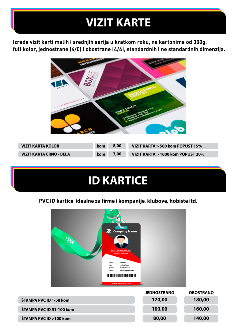 Izrada vizit karti malih i srednjih serija u kratkom roku, na kartonima od 300g,